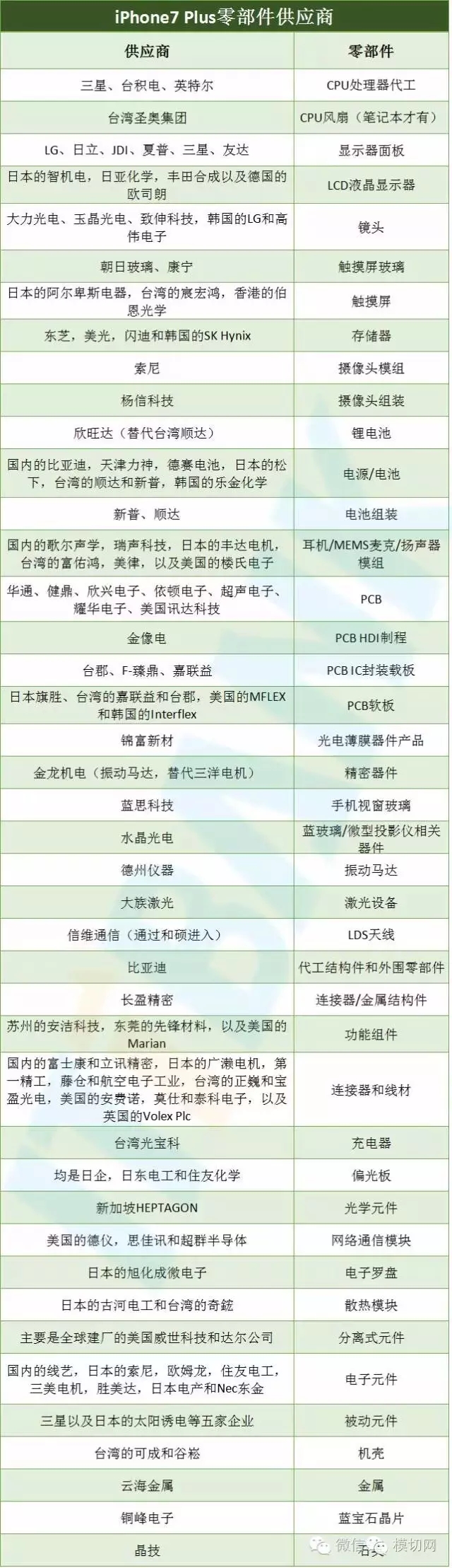 原有的iPhone7供应商名单