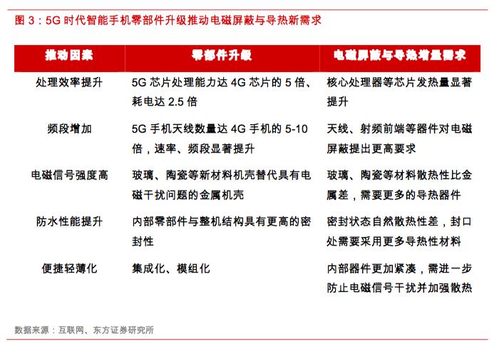 1、5G推动电磁屏蔽和导热材料及器件需求快速提升