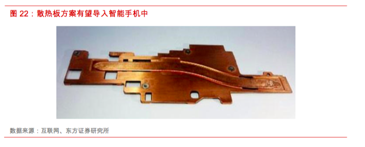 手机散热主要依靠热对流和热传导原理,而铜管水冷散热主要取决于内部液体热对流,单独依靠热管散热的效果仍存在一定不足:1)热管可以加速热传递,但加速的程度取决于对流速度,与热管截面积呈正比,手机中的热管大多为扁型,对流效果有所折扣;2)液体比热容较高,能够起到降低最高温度并减缓温升的作用,但在手机热管容积有限的情况下,依靠少量液体所达到的控温效果有限。同时,散热板生产难度较高,且在手机中需要更大空间,因此价格远高于手机中主流的导热石墨片,较散热管成本也多达数倍以上,结合手机产品销量大和轻薄化趋势,散热板在短期内批量应用于手机中仍存在一定瓶颈。